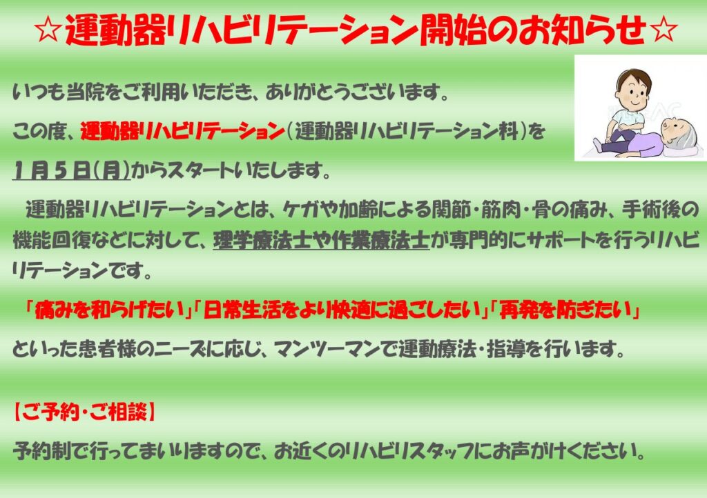 運動器リハビリテーション開始のご案内